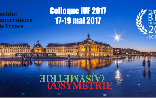 (A)symétrie : colloque annuel de l’Institut universitaire de France, à Bordeaux Posted on mercredi 17 mai 2017 by Michael Langlois Je suis à Bordeaux du 17 au 19 mai 2017 pour le colloque annuel de l’Institut universitaire de France.... Read More